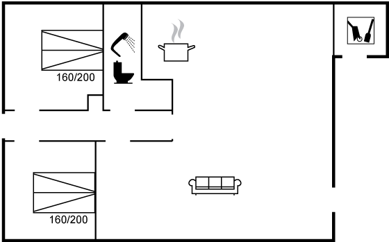 | Wasser 8000 m | 4 Pers. | 68 m2 | 2 Schlafzimmer |