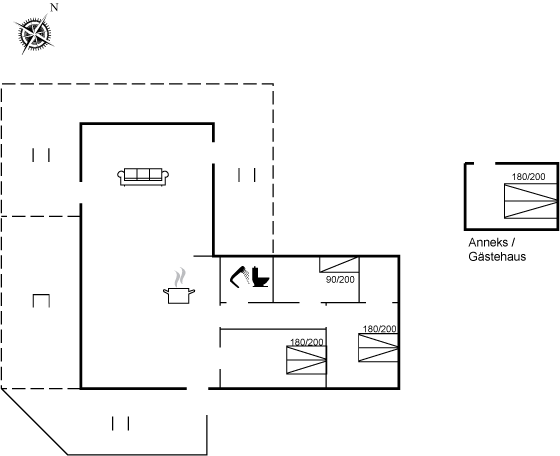 Vom hellen und freundlichen Wohn-Küchenbereich hast du Zugang zur schönen Terrasse. Bringst du kleine Kinder oder einen Hund mit, ist dieses Ferienhaus besonders ideal für dich, da das Grundstück eingezäunt ist und Kinder und Hund frei spielen können.