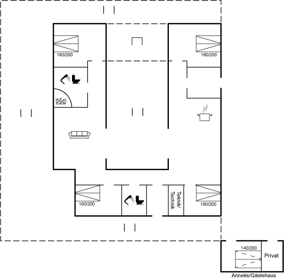 Dank der durchdachten Raumaufteilung mit separaten Bereichen kann sich jede Familie zurückziehen, und es gibt dennoch viel Platz für das gemütliche Beisammensein. Das Ferienhaus bietet Platz für bis zu 10 Personen, und alle Schlafzimmer sind mit hochwertigen Betten ausgestattet, die für eine erholsame Nachtruhe sorgen – perfekt nach einem erlebnisreichen Tag in Ebeltoft und Umgebung.