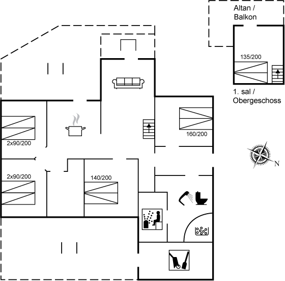 | Wasser 380 m | 8 Pers. | 102 m2 | 4 Schlafzimmer |