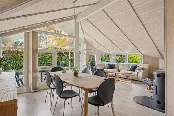 Ein Ferienhaus in Dronningmølle mit Platz zum gemütlichen Beisammensein und zur Entspannung – drinne...