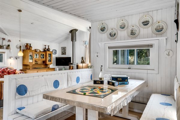 I dette specielle A-sommerhus er der skabt en hyggelig atmosfære, med hyggekroge både inde og ude. I...