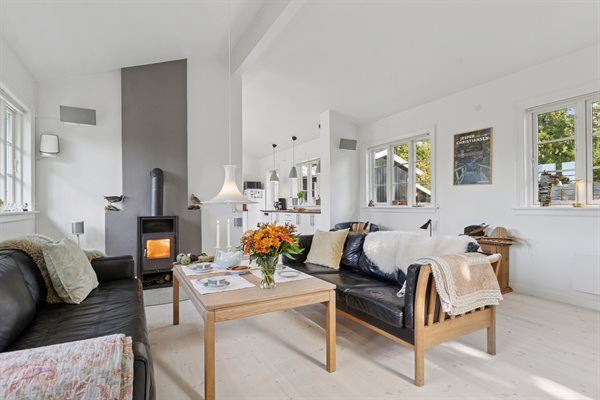 Schönes Ferienhaus mit einem hellen Wohnzimmer in Verbindung mit der Küche am Udsholt Strand. Großes...