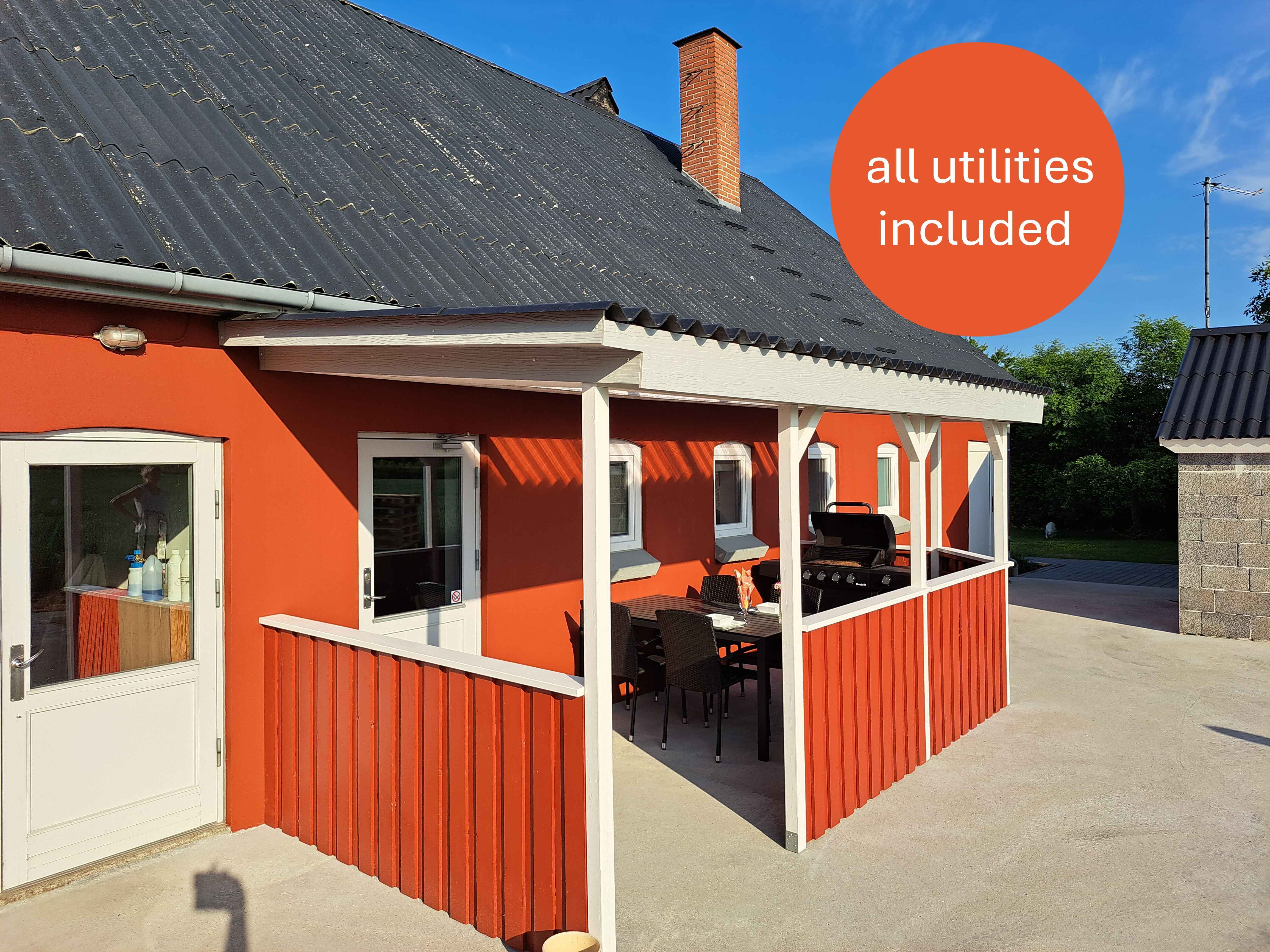 Ferienhaus auf Gartengrundstück mit großer, offener und überdachter Terrasse, auf denen Sie die Sonn...