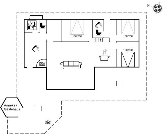 Die Raumaufteilung des Hauses macht es sowohl für einen Familienurlaub als auch für mehrere Paare geeignet, die einen gemeinsam Urlaub in schöner Umgebung verbringen möchten.