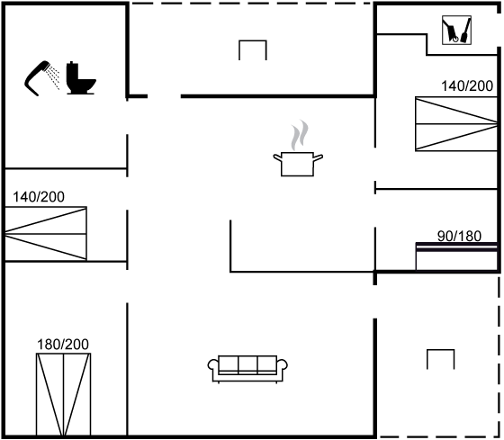 Tolles Ferienhaus in 1. Reihe zum Steilhang an der Nordsee und mit Blick auf Rubjerg Knude vom Grundstück aus. Sowohl vom Haus als auch von der Terrasse aus haben Sie einen einmaligen Meerblick, der nahezu geschaffen ist, um den Sonnenuntergang zu beobachten. Hier haben Sie praktisch von überall Aussicht auf das Meer, den Ort oder die Kirchen. Der Mittelpunkt des Hauses ist das Wohnzimmer und der Koch-Wohnbereich. Von hier aus haben Sie Zugang zu 2 offenen Obergeschossen, die an gemütliche Höhlen erinnern, aber dennoch schön hell sind. Das Wohnzimmer ist durch eine halbe Mauer vom Essbereich bzw. der Küche getrennt. Das Haus verfügt über schöne, teilweise überdachte Holzterrassen, auf der Sie praktisch bei allen Wind- und Sonnenverhältnissen ein schönes Plätzchen finden können. Es sind Loungemöbel für 8 Personen und 2 Gartenmöbelsets mit Essmöglichkeit vorhanden. Dank der zentralen Lage des Hauses können Sie Einkaufsmöglichkeiten, Restaurants und das kulturelle Leben in Lønstrup in Laufweite erreichen.
