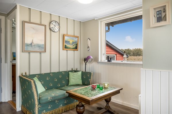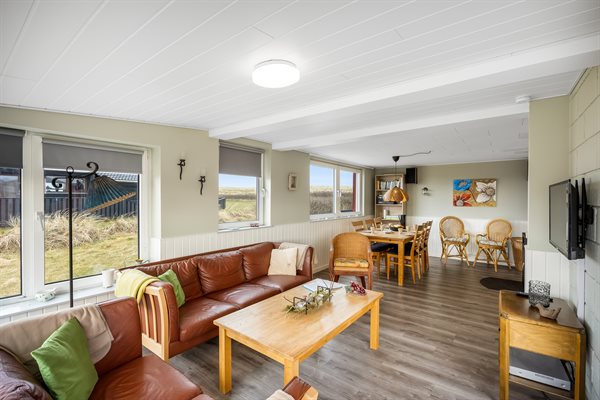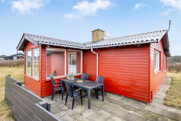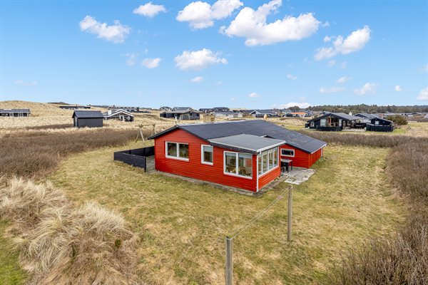 Ein schönes Ferienhaus im naturschönen Feriengebiet Nr. Lyngby. Das Haus liegt nahe am Sandstrand, der von steilen Dünen umgeben ist.
