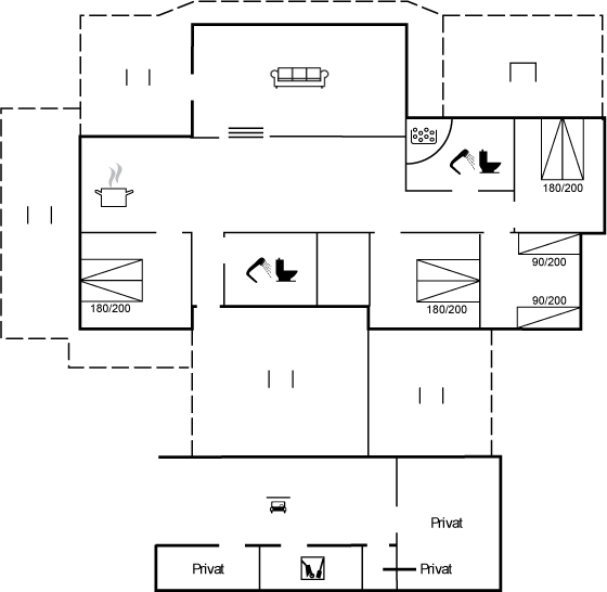 Dieses große Ferienhaus ist in versetzter Ebene gebaut, 2004 baulich erweitert, laufend modernisiert und instand gehalten. Die Lage ist einmalig – das Haus liegt am Ende einer Sackgasse und das Grundstück grenzt an offene Felder an. Vom Haus gibt es eine schöne Aussicht auf die Felder und das umliegende Ferienhausgebiet. Zum Haus gehört eine große Terrassenfläche, die das Haus auf 3 Seiten umgibt. Die in Richtung Westen gerichtete Terrasse ist überdacht und abgeschirmt. Beheizbare Klinkerböden in der Küche, im Esszimmer, im Flur und in den Badezimmern. Das Haus ist mit Qualitätsmöbeln eingerichtet.