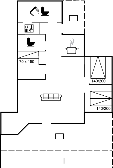 Zum Haus gehört ein großes, teilweise überdachtes Terrassenareal mit Gartenmöbeln. Holzböden überall. Nettes Badezimmer mit Duschnische, beheiztem Fliesenboden und direktem Zutritt zur Sauna. Gästetoilette mit Schränken und Waschmaschine. Die Küche ist mit dem Wohnzimmer kombiniert und u. a. mit Geschirrspüler, Tiefkühlgerät sowie Herd mit Warmluftofen und Ceran-Feld ausgestattet. Gut eingerichtetes und nett möbliertes Wohnzimmer mit Stereoradio mit CD-Spieler, DVD-Spieler und TV mit digitalem Satellitenanschluss. 3 gute Schlafzimmer; 2 mit Doppelbett und 1 mit Einzelbett und Schreibtisch.