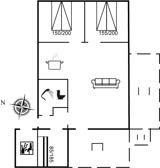 Dieses gemütliche und neu renovierte Ferienhaus liegt dicht an einem geschützten, hügeligen Gemeinschaftsgelände. Zum Haus gehören sowohl offene als auch überdachte Terrassen mit Gartenmöbeln. Innen gibt es Holzdecken und -wände sowie Teppiche. Badezimmer mit Fußbodenheizung und Dusche. Separate Sauna. Die Küche ist u. a. mit Tiefkühlgerät, Herd mit Ceran-Feld, Mikrowelle und Geschirrspüler ausgestattet. Das sehr gemütliche und persönlich eingerichtete Wohnzimmer enthält TV mit digitalem Satellitenanschluss, DVD-Spieler und Stereoanlage mit CD-Spieler und Kaminofen (Kostenloses Brennholz steht zur Verfügung). Von dem Wohnzimmer Zutritt zur überdachten Terrasse. Die Schlafplätze des Hauses verteilen sich auf 3 Zimmer; 2 Zimmer mit Doppelbett und 1 Zimmer mit Etagenbett. Ferner kostenlose ADSL-Internetverbindung (Computer ist mitzubringen), komb. Waschmaschine/Wäschetrockner und Kinderbett zur Verfügung. Ein gemütliches Ferienhaus dicht an einem der besten Badestrände Dänemarks.