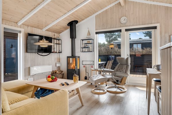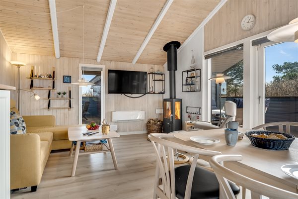 Im schönen Vorupør, in einer ruhigen Straße, liegt dieses nette Ferienhaus. Das Haus verfügt über eine große, teilweise überdachte Terrassenfläche, die das Haus umgibt. Außerdem gibt es eine schöne Wohnküche, in dem ihr u. a. gemütliche Abende vor dem Kaminofen verbringen könnt.