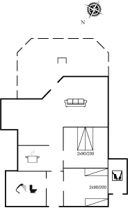 Die Schlafplätze des Hauses verteilen sich auf 1 Zimmer mit Doppelbett und 1 mit 2 Einzelbetten. 2 Schlafplätze im offenen Obergeschoss. Es ist kabellose Internetverbindung instaliert. Für die kleinen Feriengäste sind Kinderbett, Kinderhochstuhl, Sandkaisten und Schaukel vorhanden.