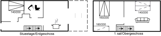 Die Schlafplätze verteilen sich auf 2 Schlafräume. 4 Schlafplätze in Doppelbetten. 4 Schlafplätze auf Schlafcouchen (doppel). 2 von diesen Schlafplätzen befinden sich im Wohnzimmer. Ferner steht ein Kinderbett zur Verfügung.