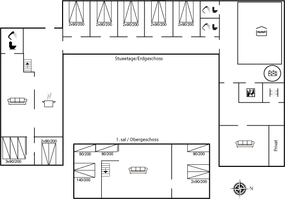 Außerdem gibt es einen Aktivitätsraum mit Tischtennis sowie einen Fernseher mit dänischen und deutschen Sendern.