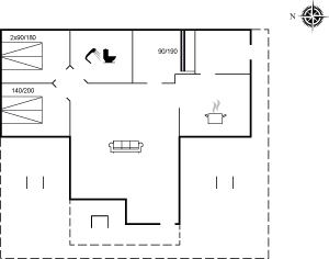 Geräumiges Ferienhaus 350 m von Ringkøbing Fjord gelegen - in einem Gebiet mit guten Möglichkeiten für Naturerlebnisse und Angelmöglichkeiten. Nur wenige Gehminuten vom Haus gibt es eine gemeinsame Fläche mit u. a. Spielplatz, Fußballtoren, Petanquebahn und Grillplatz. Das Haus hat ein offenes Obergeschoss von 65 m2 mit 2 Schlafplätzen.