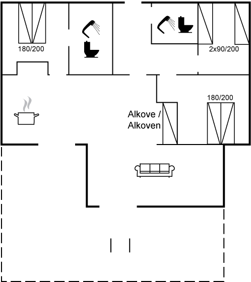 Insgesamt stehen euch 8 Schlafplätze zur Verfügung, davon sind 2 am besten für Kinder geeignet. Damit ist das Haus ideal für Familien oder mehrere Generationen, die gemeinsam Urlaub machen. Es gibt zusätzliche Stühle, sodass ihr mit 8 Personen am Esstisch sitzen könnt. Bitte beachtet jedoch, dass im Wohnbereich keine 8 Sitzplätze vorhanden sind.
