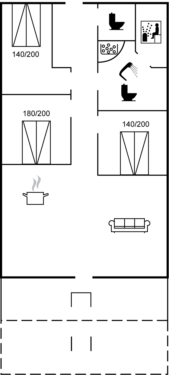 Es gibt drei geräumige Schlafzimmer. Auch die Badeeinrichtungen lassen keine Wünsche offen: Ein Gäste-WC und ein großes Badezimmer mit Dusche, Whirlpool und Zugang zur hauseigenen Sauna.
