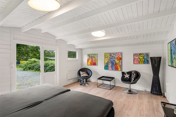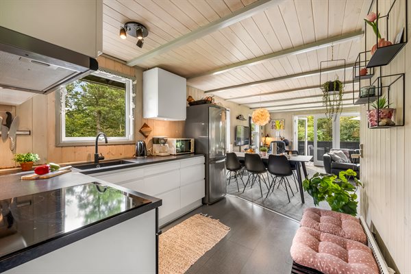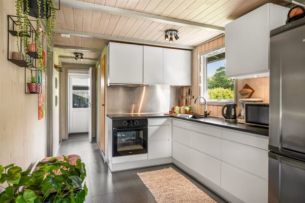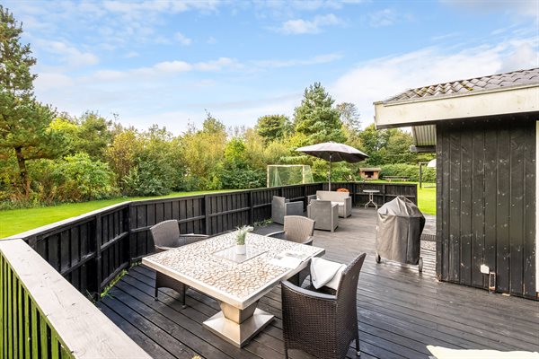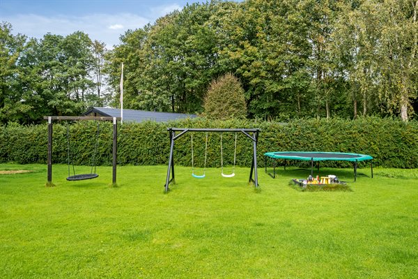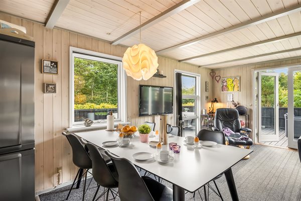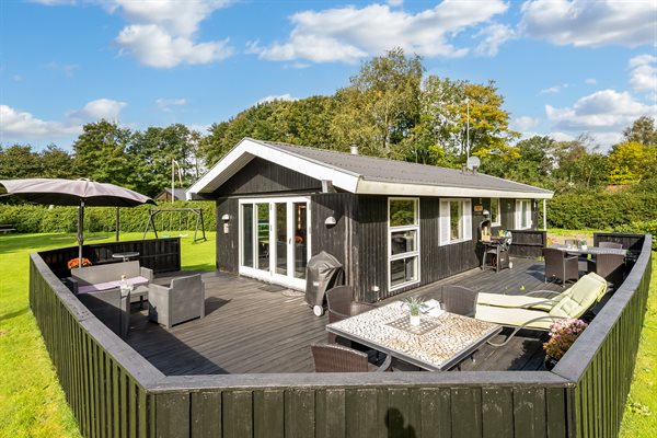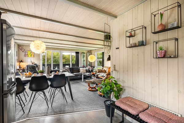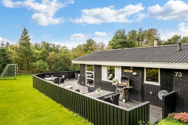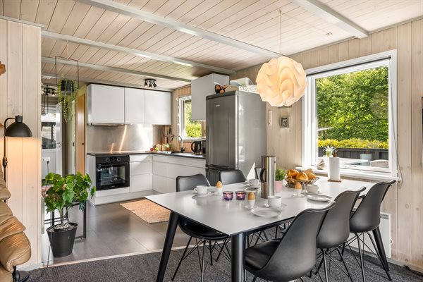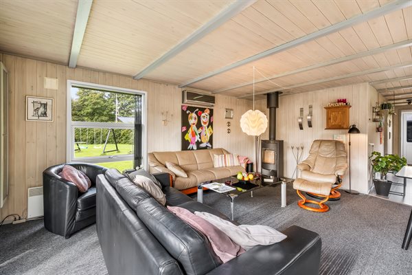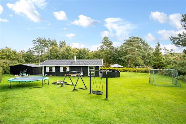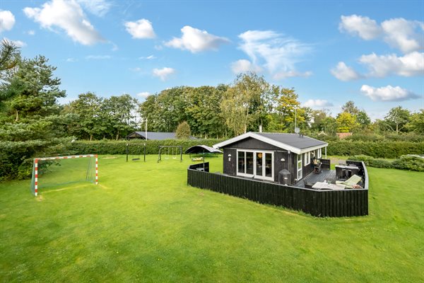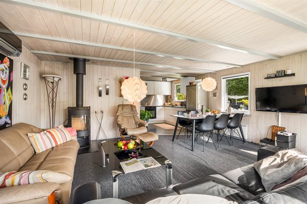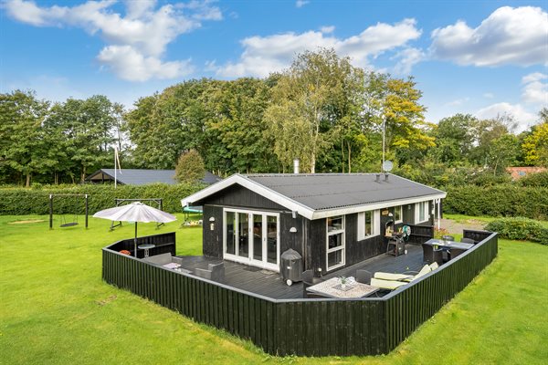 Ferienhaus in ruhiger Umgebung auf einem ungestörten Grundstück, wo Gemütlichkeit und gemeinsames Zusammensein im Mittelpunkt stehen. Hier spürst du Urlaubsstimmung sowohl drinnen als auch draußen – mit Terrassen rund ums Haus, Windschutzhütte, Trampolin, Nestschaukel usw. An kühleren Tagen kannst du es dir drinnen gemütlich machen – mit einem guten Buch oder vor dem Fernseher, wo du TV2 Play, Viaplay und Nordisk Film streamen kannst. Es gibt eine Internetverbindung mit einer Geschwindigkeit von 1000/1000 Mbit. Nur 350 Meter vom Ferienhaus entfernt findest du einen Bereich mit Multifunktionsspielfeld und einem großen Spielplatz.