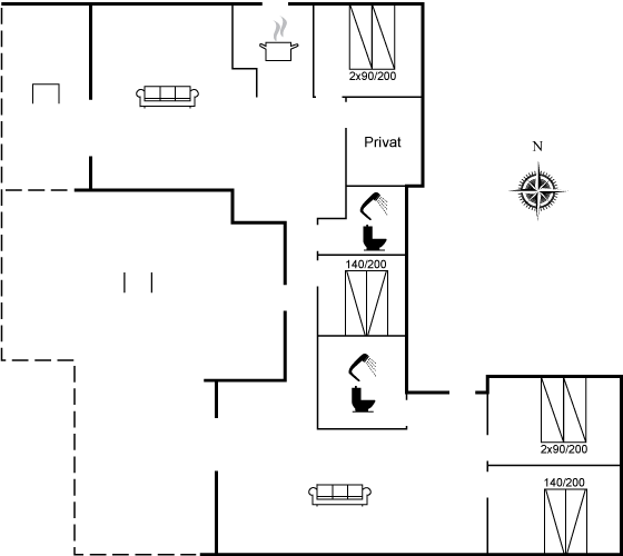 Nach dem Umbau, der unter anderem einen größeren Anbau umfasst, bietet das Haus Platz für bis zu 8 Personen an. Es ist mit einer funktionalen Küche, 4 Schlafzimmern, 2 Bädern, einem gemütlichen Wohnzimmer und einem großen, hellen Aufenthaltsbereich mit direktem Zugang zu einer wunderschönen Terrasse eingerichtet. Hier kannst du das Ferienleben problemlos nach draußen verlegen – und die Außendusche ermöglicht ein erfrischendes Bad nach einem schönen Tag am Strand.