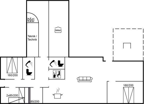 Das Ferienhaus verfügt über vier Schlafzimmer und zwei Badezimmer mit Fußbodenheizung und eignet sich somit ideal für eine große Familie oder zwei Familien, die den Urlaub gemeinsam vebringen möchten.