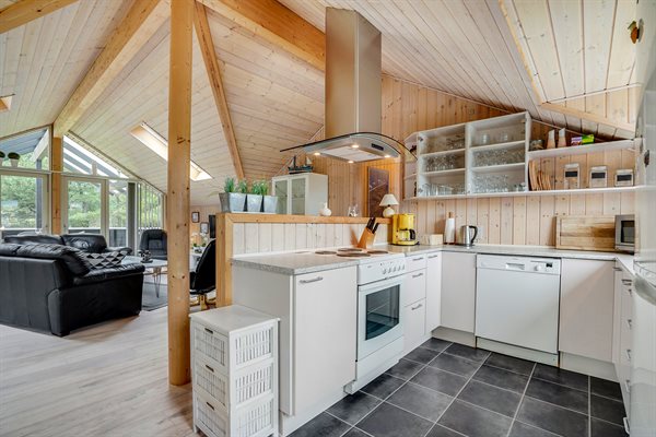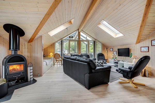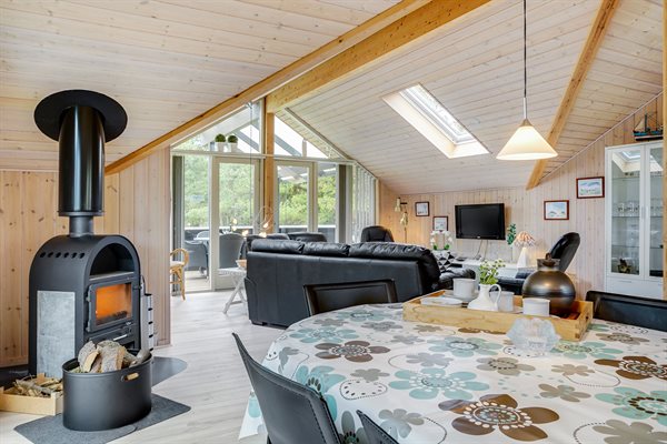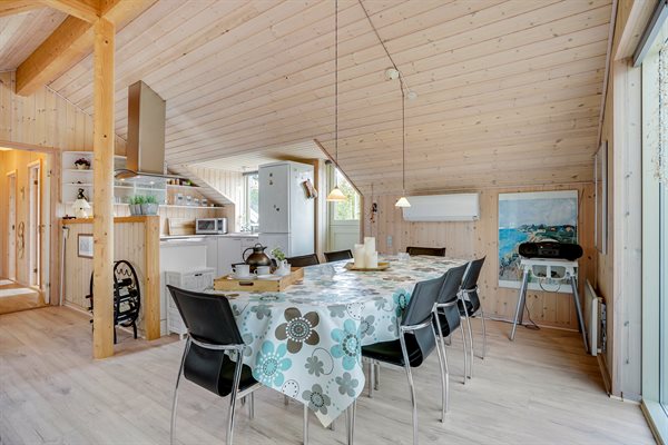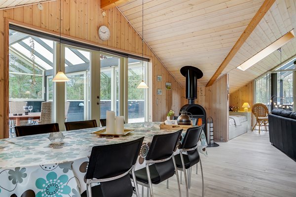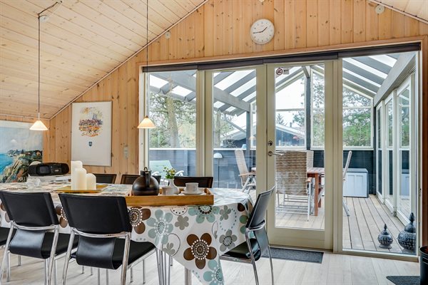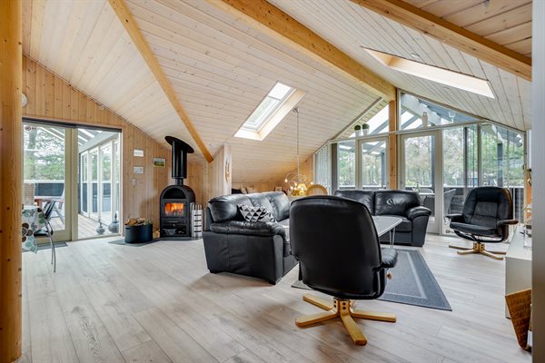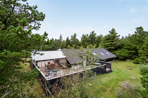 Dieses geräumige und hell eingerichtete Ferienhaus liegt auf einem großen von Bäumen umgebenen Grundstück. Zum Haus gehört eine besonders schöne und zum Teil überdachte/abgeschirmte Terrasse mit guten Gartenmöbeln.