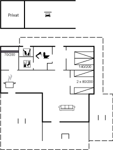 Sommerhuset er egnet for 6 personer samt 1 barn opp til 3 år. Ferieboligen har et bebodd areal på 72 m² og er bygget i 1977. I 2014 gjennomgikk ferieboligen en delvis renovering. 1 stykk husdyr tillatt. Ferieboligen har vaskemaskine. Frysekapasitet på 10 liter. Det er i tillegg vedovn.