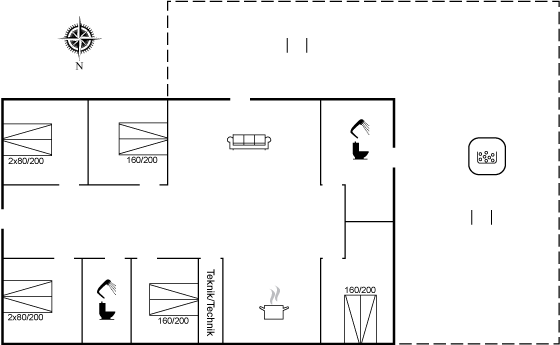 Vom gemütlichen Wohnbereich hast du direkten Zugang zu einer großen Terrassenfläche, und auf der westlich ausgerichteten Terrasse befindet sich ein schöner Außen-Whirlpool (Standwasser) für 5 Personen.