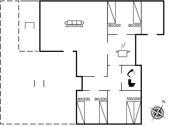 Das Haus liegt in der Nähe vom kinderfreundlichen Badestrand mit Badesteg, einem großen Spielplatz und schöner Natur mit guten Möglichkeiten für lange Spaziergänge mit oder ohne Hund. Außerdem liegt das Haus nur eine kurze Autofahrt von Frederikshavn entfernt, von wo aus Fähren nach Læsø und nach Schweden fahren.