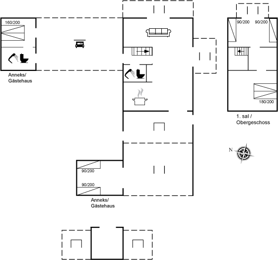 Willkommen in dieser fantastischen Sommeroase, wo Luxus auf Schönheit und Komfort auf einem großzügigen 3700 m² großen Grundstück trifft. Dieser Ort präsentiert eine unwiderstehliche Residenz, bei der alles aus den besten Materialien gefertigt wurde und der Blick auf die wunderschöne Dünenlandschaft und das Meer einfach atemberaubend ist. Das Ferienhaus eignet sich für 8 Personen. Die Ferienunterkunft hat eine Wohnfläche von 122 m², ist 2-stöckig, und wurde 1969 gebaut. 2020 wurde die Ferienunterkunft renoviert. Haustiere dürfen nicht mitgebracht werden. Die Ferienunterkunft ist mit Waschmaschine ausgestattet. Wäschetrockner. Tiefkühlmöglichkeit mit 110 Liter Nutzinhalt. Die Ferienunterkunft liegt auf einem 3735 m² großen Naturgrundstück. Die Entfernung zum Meer beträgt 180 m. Die nächste Einkaufsmöglichkeit liegt 6000 m entfernt. In einem Abstand von 8000 m gibt es einen Golfplatz. Es steht ein offenes Terrassenareal zur Verfügung. Außerdem gibt es überdachte Terrasse. Es steht ein Grill zur Verfügung. Parkplatz auf dem Grundstück. Schlafplätze: Obergeschoss: 1 Zimmer mit Doppelbett und 1 Zimmer mit 2 Einzelbetten. Gästehaus: Doppelbett. Gästehaus: 2 Einzelbetten. Die Küche ist mit Kühlschrank ausgestattet. Außerdem gibt es 4 Keramik-Kochfelder, Umluftofen sowie Geschirrspüler. Es gibt 2 Badezimmer mit Fußbodenheizung; 1 mit Duschnische und 1 mit Badewanne. 1 Smart-TV. Fernsehen via Streaming. Mindestens 4 dänische Fernsehsender. 1-3 deutsche Fernsehsender. Es steht kabellose Internetverbindung zur Verfügung.