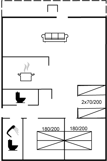 100 m vom kinderfreundlichen Badestrand liegt dieses prachtvolle Ferienhaus. Das Haus liegt auf einem Natur-/Gartengrundstück, von dem aus du das Meer ahnen kannst. Zum Haus gehört eine schöne, überdachte Terrasse mit Gartenmöbeln.