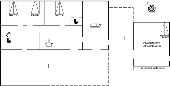 Das Haus verfügt über einen gemütlichen Aktivitätsraum mit Darts, Airhockey, Tischfußball und einem kreativen Basteltisch – perfekt für Kinder und Erwachsene.