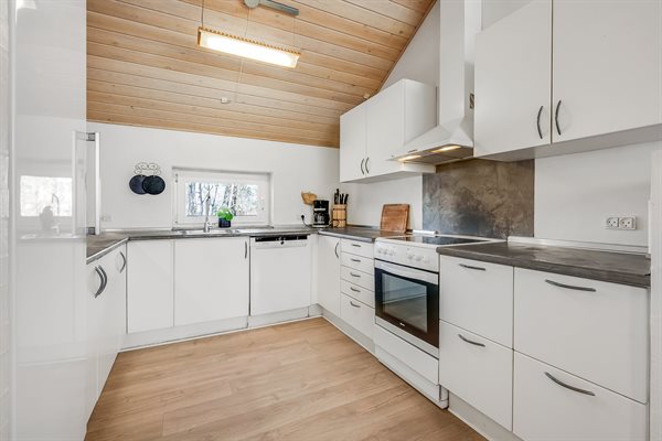 Im Inneren präsentiert sich das Ferienhaus hell und modern und ist ideal für eine Familie mit Kindern. Es gibt außerdem die Möglichkeit, zum Beispiel die Großeltern mit in den Urlaub einzuladen. Der Mittelpunkt des Hauses ist die große, schöne Wohnküche. Die großen Fenster sorgen für einen guten Lichteinfall. Vom Wohnzimmer aus hast du direkten Zugang zur schönen Terrasse.