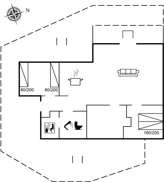 Das Haus ist mit einem schönen Wohnbereich eingerichtet, der in offener Verbindung mit der Küche liegt, sowie mit zwei Schlafzimmern mit guten Betten.