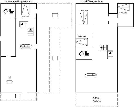 Das Haus erstreckt sich über zwei Etagen und bietet Platz für bis zu neun Personen. Hier gibt es genug Raum für die ganze Familie – auch für die vierbeinigen Mitglieder, die mehr als willkommen sind. Im Erdgeschoss findest du den großen Wohnbereich mit Kaminofen, Küche und Essplatz in einem. Die Decke ist hoch, und es gibt reichlich Platz zum Zusammensein, ohne dass es beengt wirkt. Im oberen Stockwerk lädt ein weiterer Wohnraum mit Ecksofa zum Rückzug ein – ideal, wenn es im Rest des Hauses lebendig zugeht.