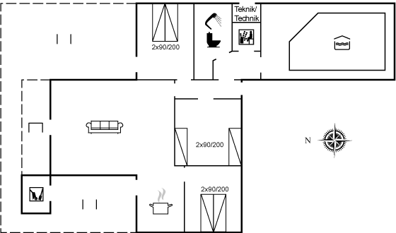Dieses prachtvolle und besonders gut ausgestattete Ferienhaus liegt in den Hügeln bei Femmøller Strand -nicht weit von einem schönen, kinderfreundlichen Badestrand entfernt. Das Haus liegt auf einem leicht hügeligen Naturgrundstück mit Platz für Ballspiele und andere Aktivitäten im Freien. Zum Haus gehören zum Teil überdachte und eingezäunte Terrassen, wo Sie den ganzen Tag hindurch die Sonne genießen können.