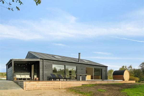 Das Haus besticht mit seiner schwarzen Fassade und einer großen nach Süden ausgerichteten Terrasse. Hier findest du einen Whirlpool, eine Sauna,