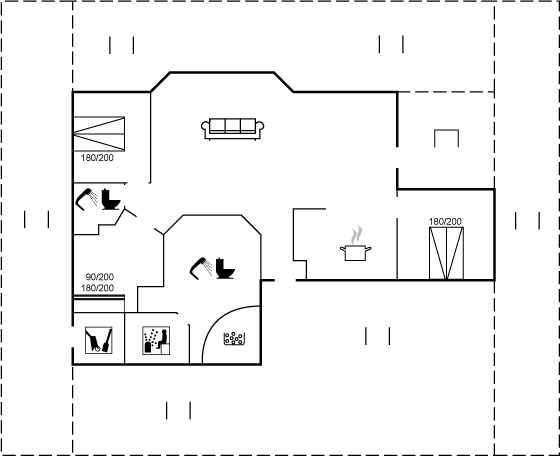 Das Haus hat zwei Badezimmer, beide mit Toilette, Dusche und Fußbodenheizung. Im großen Wellnessbad gibt es zudem einen Whirlpool für vier Personen und Zugang zu einer Sauna für drei Personen.