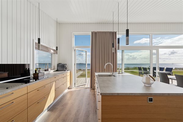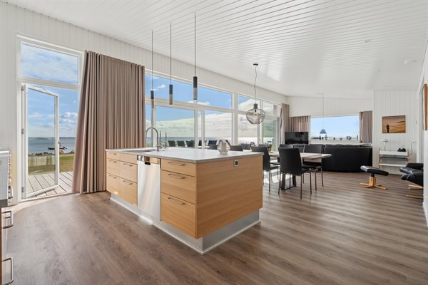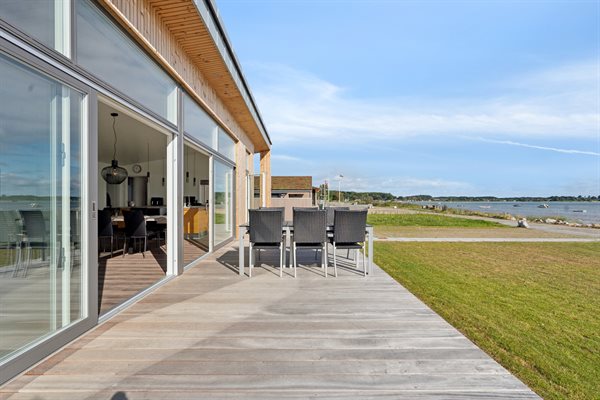 In dem wunderschönen Ferienhausgebiet von Grønninghoved liegt dieses einzigartige und herrliche Ferienhaus. Das Ferienhaus befindet sich in erster Reihe direkt am Wasser und ist damit perfekt gelegen mit einem fantastischen Panoramablick über den Lillebælt. Die Aussicht kann aus allen Blickwinkeln im großen Wohn- und Küchenbereich genossen werden – egal, ob du in der Küche das Abendessen vorbereitest oder im Sessel am breiten Fenster entspannst, du kannst jederzeit das Leben auf dem Wasser und den ruhigen Horizont verfolgen.