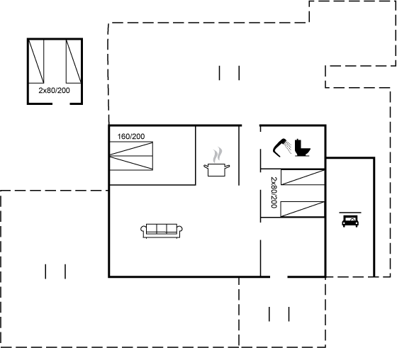 Das Haus ist mit zwei Schlafzimmern eingerichtet und im geräumigen Gästehaus gibt es 2 zusätzliche Schlafplätze. Das Ferienhaus wurde 2018 renoviert und tritt hell und modern hervor mit neuer Küche und Wohnzimmer, auf 61 optimal genutzten Quadratmetern verteilt sowie einem gemütlichen Wintergarten von 15 Quadratmetern.