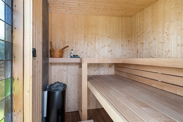 Das Leben im Freien ist etwas ganz Besonderes an diesem Ferienhaus. Das Gästehaus, der Hot Tub und die schöne Außensauna befinden sich am höchsten Punkt des Grundstücks mit Blick auf das Wasser. Der gesamte Wellnessbereich ist von einer herrlichen Terrasse umgeben, die zu Gemütlichkeit und Geselligkeit einlädt. Hier könnt ihr einen Abend im warmen Hot Tub unter dem Sternenhimmel genießen oder in der Sauna mit Panoramablick entspannen.