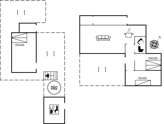 Hier habt ihr 94 m², aufgeteilt zwischen dem Ferienhaus selbst und einem neuen, geräumigen Gästehaus. Das Ferienhaus verfügt über zwei Schlafzimmer – eines mit Doppelbett und das andere mit einem Einzelbett – sowie über einen großen Wohn- und Essbereich, in dem sich die ganze Familie versammeln kann. Im Haus findet ihr außerdem drei SMART-TVs, sodass es reichlich Unterhaltungsmöglichkeiten im Innenbereich gibt.
