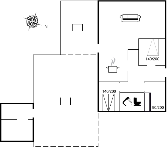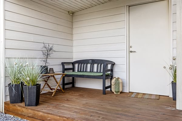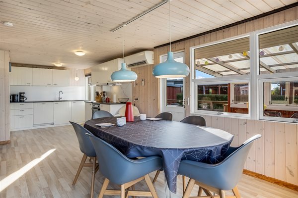 Das Haus ist hell, geräumig und gemütlich eingerichtet – und bietet Platz für bis zu sechs Personen, und die Schlafplätze sind auf drei separate Schlafzimmer verteilt. Der große Küchen- und Wohnbereich lädt zu gemeinsame Stunden und Aktivitäten ein. Von hier aus habt ihr direkten Zugang zu einer überdachten Terrasse mit einer gemütlichen Lounge-Ecke, wo ihr entspannen und viele schöne Stunden im Freien genießen könnt.