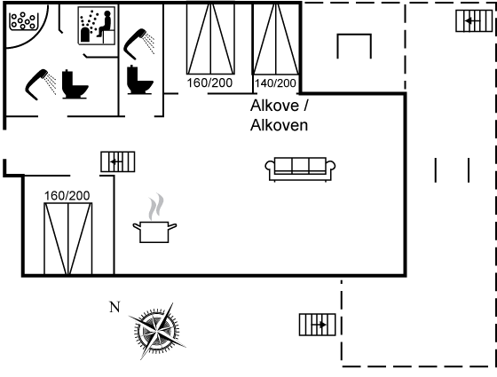 Bitte beachte, dass sich zwei der Schlafplätze auf dem großen, offenen Obergeschoss des Hauses befinden und dass zwei weitere Schlafplätze in der gemütlichen Alkove direkt am Wohnzimmer liegen.