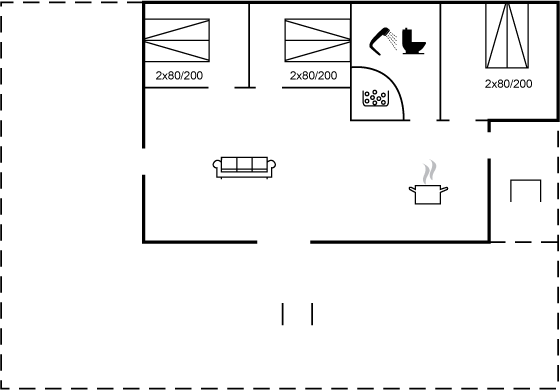Übrigens: Zwei der Schlafplätze befinden sich im offenen Obergeschoss, und sind aufgrund der Zugänglichkeit am besten für ein par Teenager oder größere Kinder geeignet. Außerdem verfügt das Haus nur über ein Bad/Toilette.