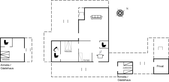 Bitte beachte, dass eines der Gästehäuser nicht winterfest ist und daher nur in der Sommersaison zur Vermietung gehört. Im Haus gibt es eine zusätzliche Schlafmöglichkeit, da ein Bett im Durchgang zwischen Küche und Schlafzimmer aufgestellt ist. Das Haus darf jedoch in der Sommersaison von maximal 6 Personen und in der Wintersaison von maximal 5 Personen bewohnt werden.