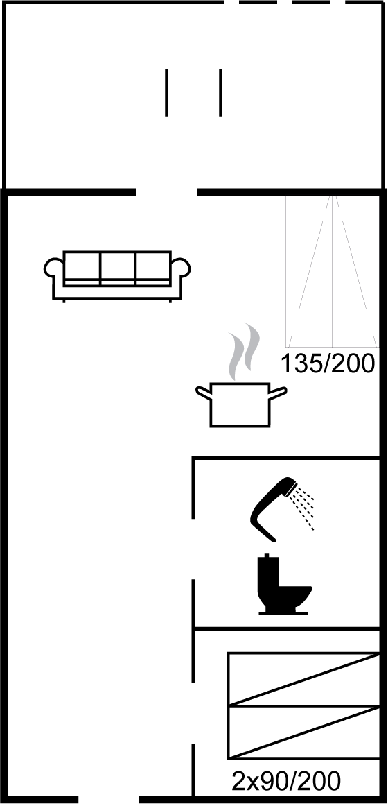 Übrigens befinden sich zwei Schlafplätze auf der Schlafcouch im Wohnzimmer.