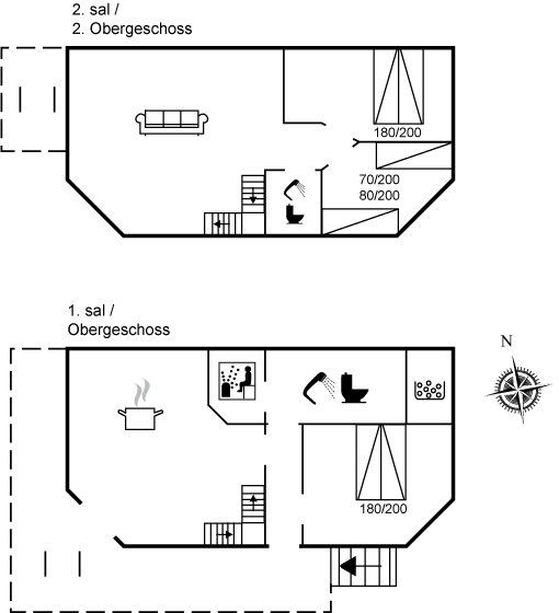 Bitte beachte, dass zwei der Schlafplätze sich im offenen Obergeschoss befinden, den man über eine Leiter im Wohnzimmer im zweiten Stock erreichst.