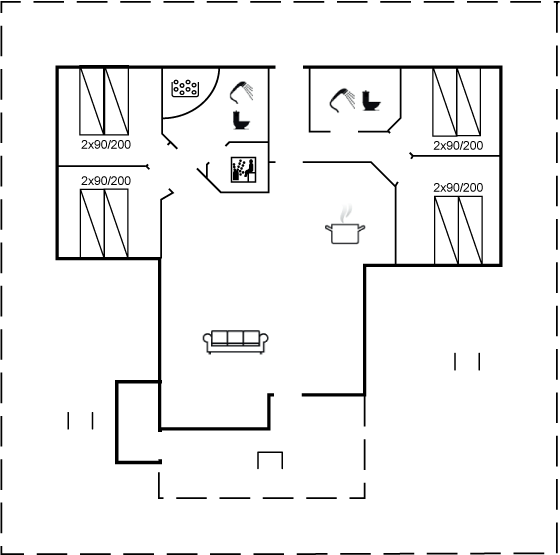 Das Haus ist hell und gemütlich eingerichtet und verfügt über 4 reguläre Schlafzimmer sowie 2 Badezimmer. Der Mittelpunkt des Hauses ist die große Wohnküche, von der aus du Zugang zu einer großen, teilweise überdachten Südwest-Terrasse hast.
