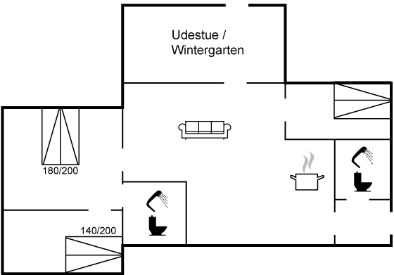Dieses Ferienhaus liegt in einem kinderfreundlichen Feriengebiet – dicht an einem schönen Badestrand. Übrigens: Das Zimmer mit Doppelbett ist ein Durchgangszimmer (siehe Grundriss).