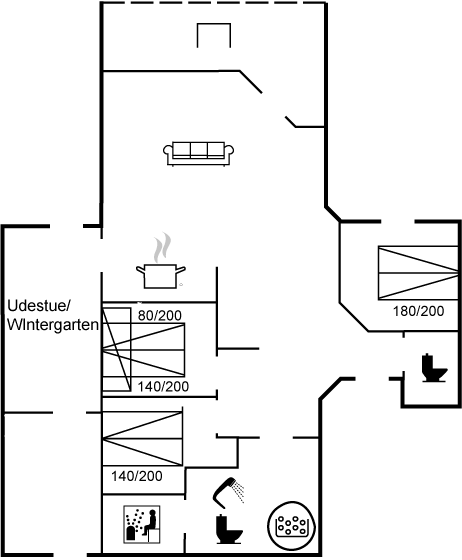 Zum Haus gehören sowohl eine offene als auch eine überdachte Terrasse, auf denen du schöne Stunden im Freien verbringen kannst. Außerdem gibt es einen Wintergarten mit großen Glasfronten und Blick auf den herrlichen Garten. Im Garten hast du die Möglichkeit, die Sonne zu genießen, und auch für die kleinen Urlaubsgäste ist gesorgt – da sowohl eine Schaukel als auch ein Sandkasten zur Verfügung stehen.